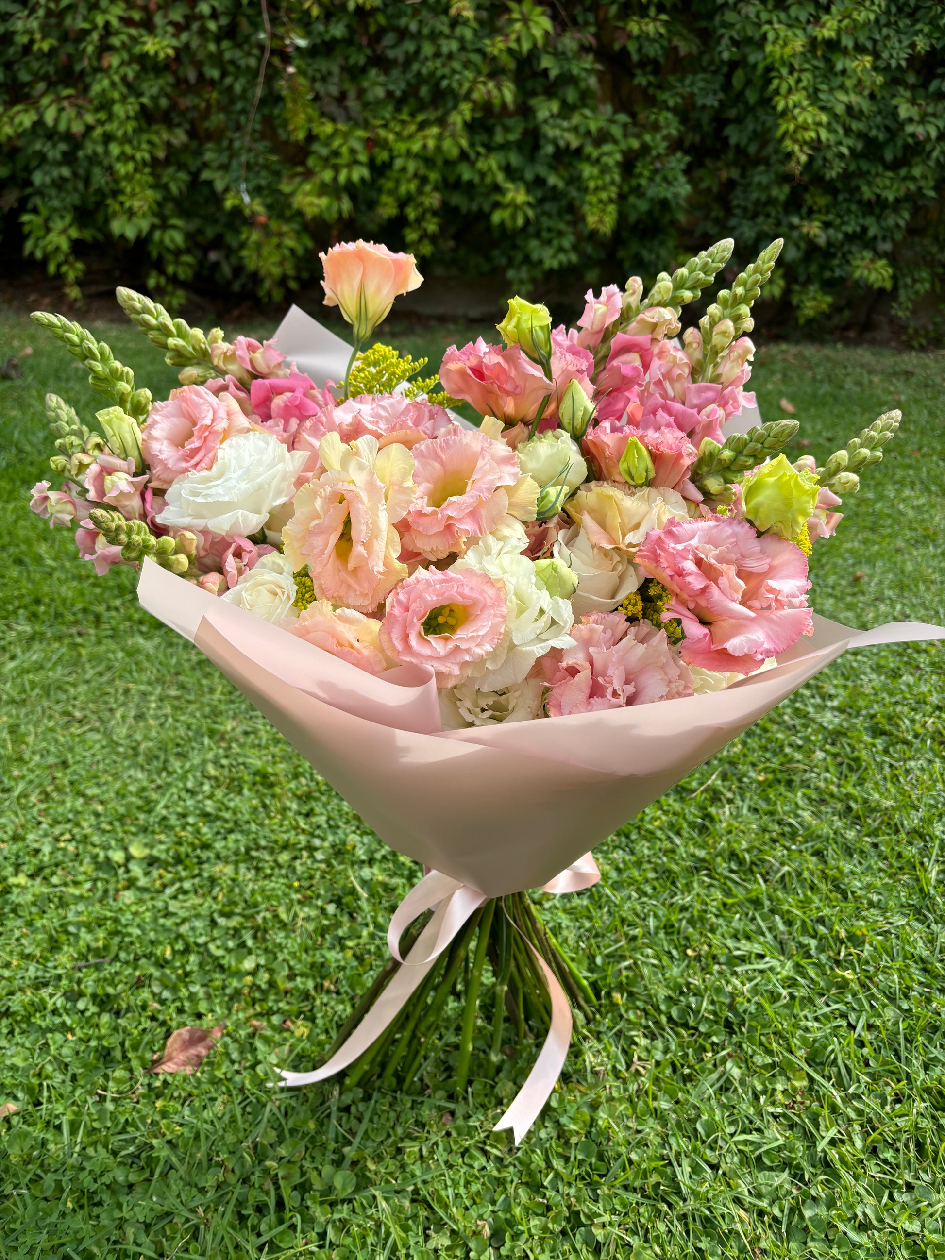 Ramo con flores premium como Lisianthus, Rosas y más!